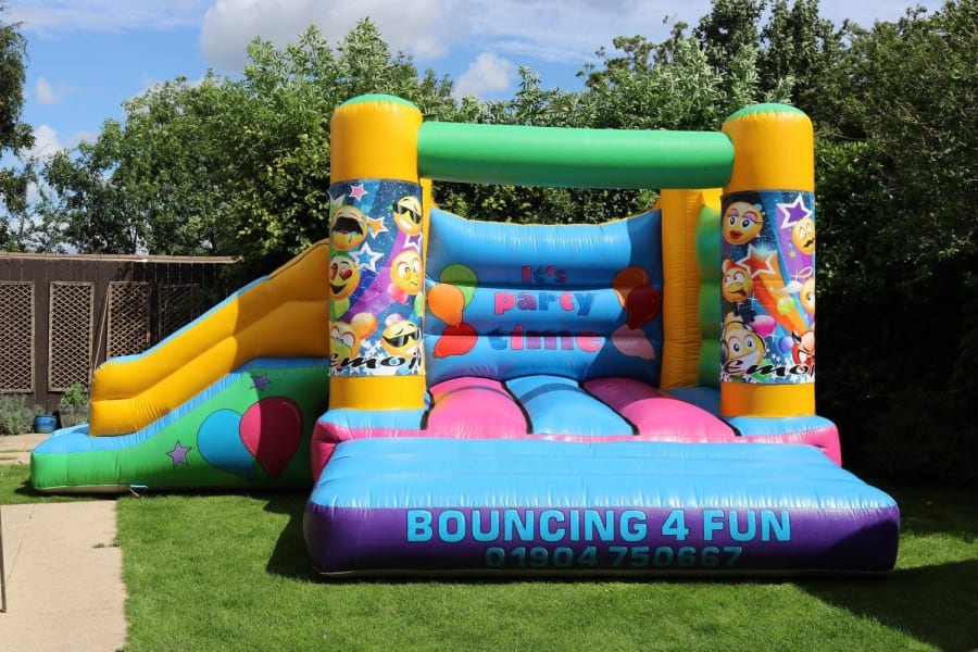 The Emoji Bouncy Castle and slide is a popular choice with girls and boys. This bouncy castle provides hours of bounce and slide fun. A shower cover can be provided upon request the day before the hire date if the weather looks like it's going to be showery.