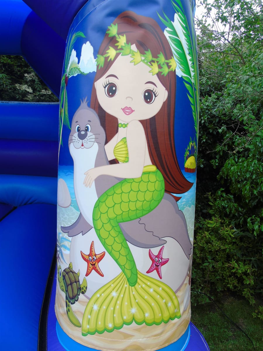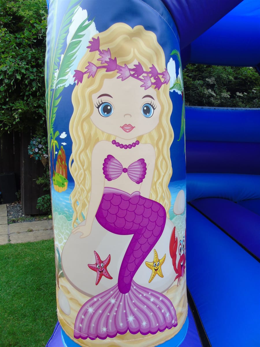 This gorgeous mermaid bouncy castle is available for hire in York and surrounding areas and it is suitable for indoor and outdoor use. Features a built in sun/shower cover and makes the perfect fun entertainment for children's parties and special occasions.