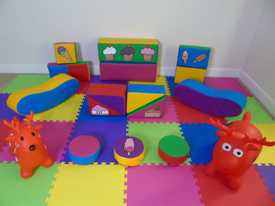 Includes: Quality padded mats 16 piece soft play set 2 hoppers Ideal for any indoor venue including parties at home.