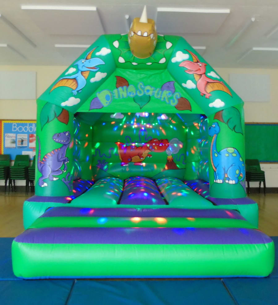 Add some dance and bounce to your kids party with this fabulous disco dinosaur bouncy castle, which features a 3D Dino head, stunning colourful dinosaur artwork. It comes with a disco light. 🦖🦕🦖🦕