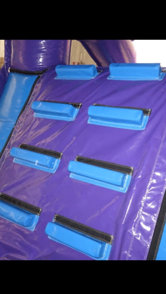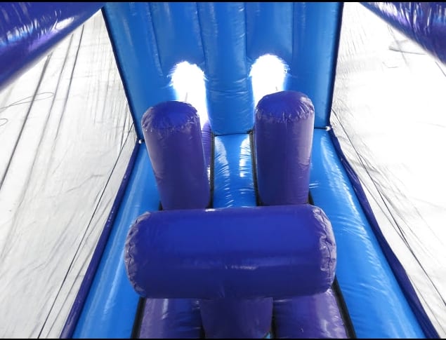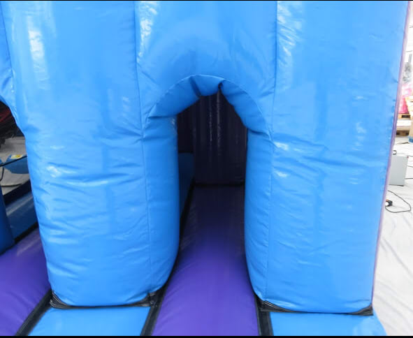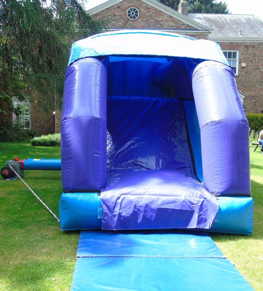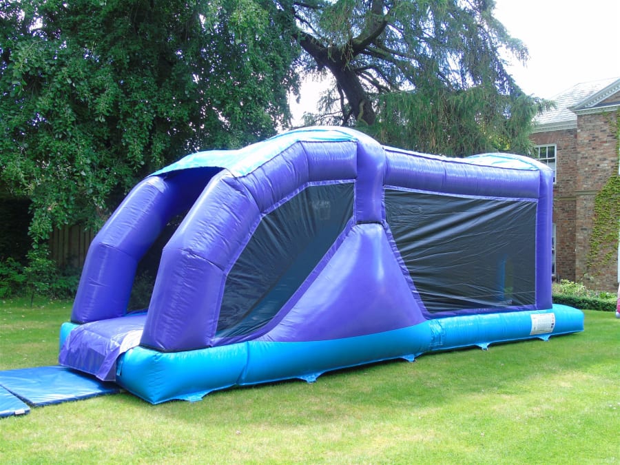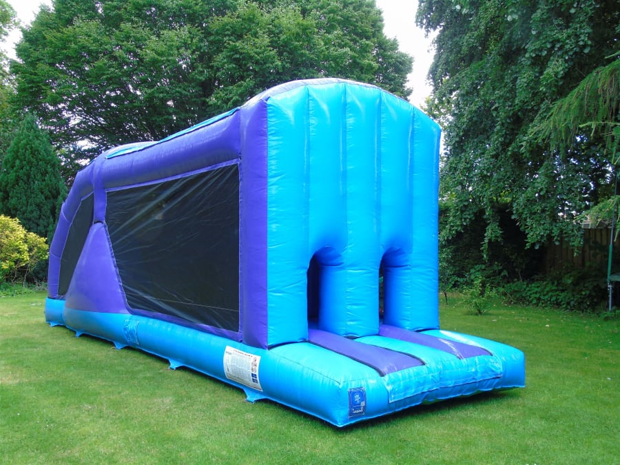 Our fabulous obstacle course / fun run is a great attraction giving more than just a bouncy area. It has 3 obstacles inside with both Biff Bashes and a T-Bar, The slide is a great height and has special sliding material, it even has a built in sun/shower cover. With great choice of colours and a polished finish, this is a perfect combination for girls and boys!